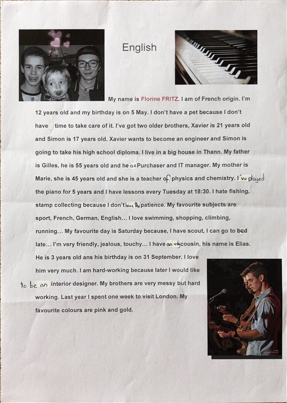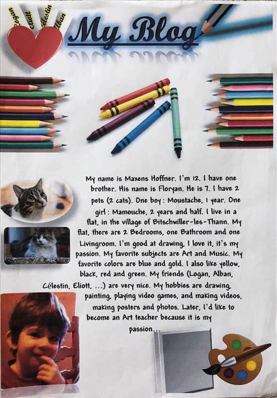 Les élèves de 5e de Mme Rethaber ont travaillé cette année sur le thème du blog. Ils devaient se présenter en anglais, en une page, illustrée de quelques photos. Voici quelques unes des productions de la 5eC... |