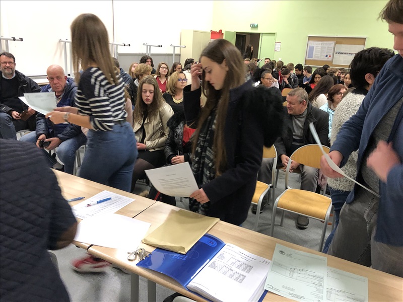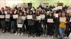 Cette année encore, les élèves lauréats du Diplôme National du Brevet ont été mis à l'honneur au cours d'une cérémonie, le 22 Novembre dernier, animée par la Principale, Mme Blois. Cette année encore, les élèves du Collège Faesch se sont distingués par un taux de réussite de près de 10 points au-dessus de la moyenne académique, avec 97,4 % d'élèves reçus, dont presque tous avec une mention ! Encore toutes nos félicitations aux heureux lauréats ! |
