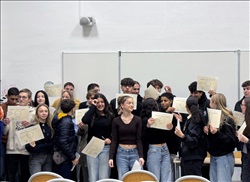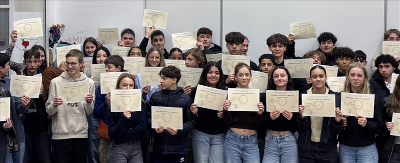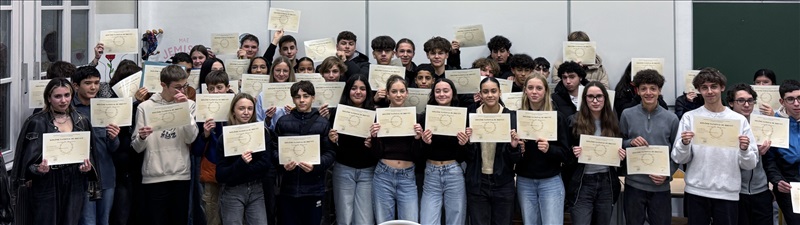 Cette année encore, les élèves lauréats du Diplôme National du Brevet ont été mis à l'honneur au cours d'une cérémonie, le 19 Novembre dernier, animée par la Principale, Mme Ramstein. Encore toutes nos félicitations aux heureux lauréats ! |