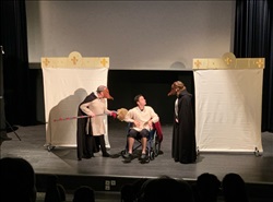 Après un repas partagé au restaurant universitaire, nous avons pu assister à un spectacle : « Molière, malgré lui » par la compagnie Ochisor. |