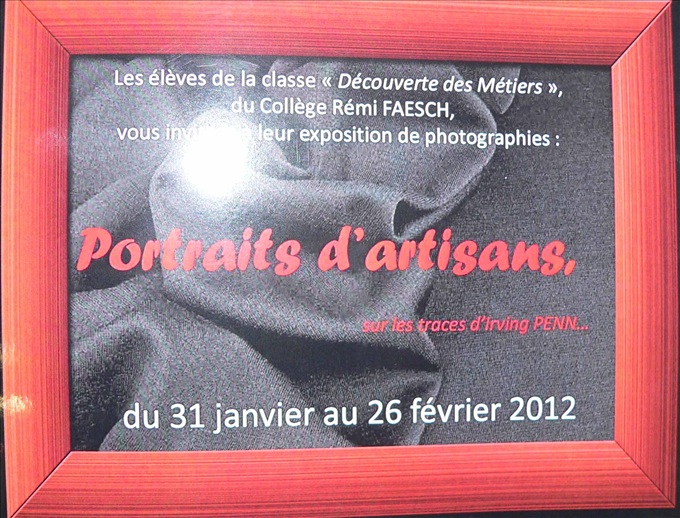 Les élèves se sont inspirés d'Irving Penn, un photographe américain des années 50 qui a réalisé une série de clichés sur les artisans et leurs outils de travail. L’idée du collège Rémy Faesch a été de faire entrer les artisans au collège et de les mettre en scène avec leurs outils de travail. Une approche originale pour un projet et un résultat réussi et de grande qualité. Les artisans, à travers ce projet, ont accepté de transmettre à nos jeunes un peu de leur passion, de leur métier. |