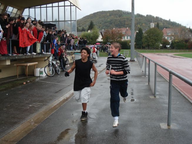 Traditionnel rendez-vous du mois d'octobre, le cross du collège Faesch s'est tenu le dernier mercredi avant les vacances de la Toussaint. Les élèves ont couru par niveau (6e,5e,4e et 3e) et par groupes filles et garçons. Ils étaient accompagnés de quelques parents d'élèves et de professeurs, volontaires pour courir. Cette année un invité surprise (mais ô combien banal au mois d'octobre...) : la pluie. Toutefois il en fallait plus pour refroidir les ardeurs des élèves du Faesch, comme peuvent l'attester ci-dessous les prises de vue et les vidéos, réalisées par Mme Mack. |
