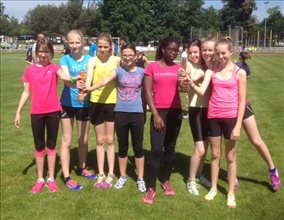 La saison estivale d'athlétisme s'est terminée mercredi 13 mai à Bischwiller (67) avec les championnats d'académie où le collège Faesch avait la plus forte délégation de la région. En effet, suite aux championnats départementaux, toutes nos équipes s'étaient qualifiées avec de bonnes performances individuelles et notamment deux podiums pour les benjamins et les minimes filles par équipes. Lors de cette première journée qui s'est déroulée le 22 avril au relais 4x60m , Emmanuella Weiss, Emma Petersen, Florine Sion et Lucille Loeffel l'avaient emporté le titre haut la main. Pour finir la journée, 2 équipes du 8 X 200 montaient même sur le podium... A titre individuel, à noter les 11,90m d'Antoine Depoire au poids, les 1,40m de Rani Bessah ou encore les 3'43 de Marie Elise au 1000m. Tous les autres résultats sont visibles sur le site unss.org dans la rubrique résultats. Mercredi 13 mai, nous nous sommes rendu dans le Bas Rhin avec 33 athlètes dont 4 jeunes officielles indispensables (Lucie Guth, Emma Petersen (blessée) Zoé Burtschell et Camille Roussel) avec de légitimes ambitions notamment aux relais... Hélas alors que nos minimes filles avaient de fortes chances de gagner et de se qualifier aux championnats de France (meilleur temps d'engagement), une malheureuse chute au premier passage ruinait nos ambitions. La journée continuait néanmoins sous un soleil de plomb et quelques performances individuelles furent notables: Mehdi Guennani se classa 2ème du 50m, Florine à la même place au 100m de même que Lucille et Emmanuella sur le podium du 50m. Paul gagne le javelot avec 31m. Toutes nos équipes se classent honorablement dans les 8 meilleures équipes de l'Académie. Enfin la dernière course nous a permis de repartir avec quelques médailles, le relais 8x200 montant sur la 3ème marche du podium avec Marie Elise, Manon, Mehdi, Rany, Emmanuella, Lucille, Alexis et Antoine... Bravo à tous pour cette belle année athlétique et rendez vous l'an prochain pour de nouvelles émotions... |