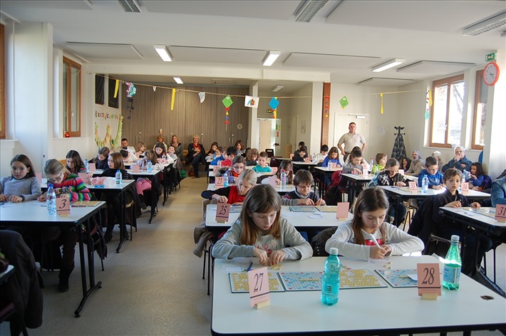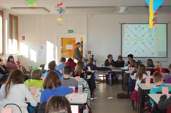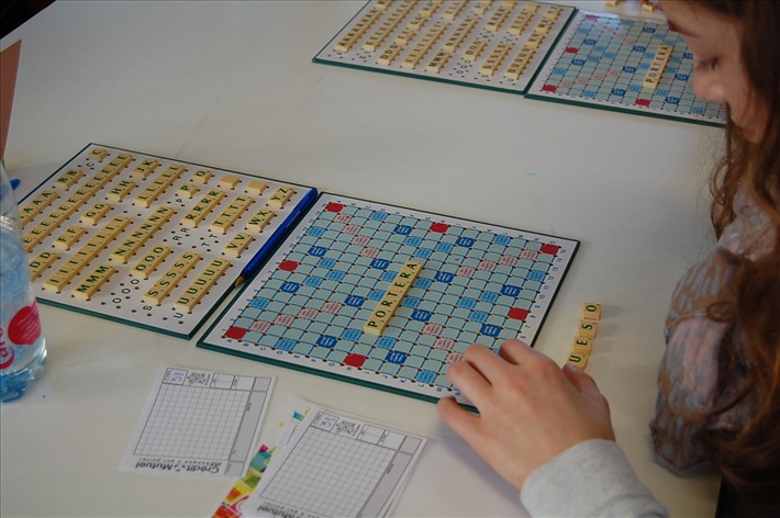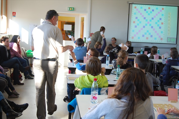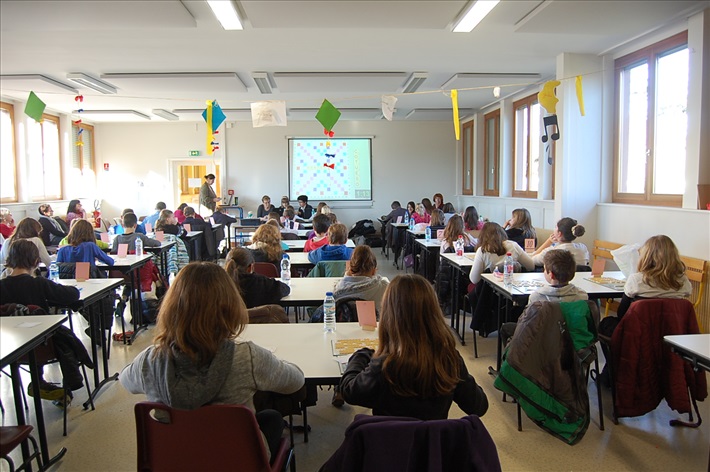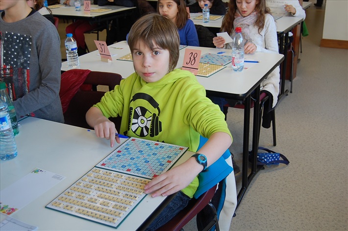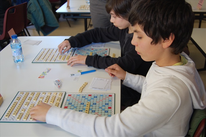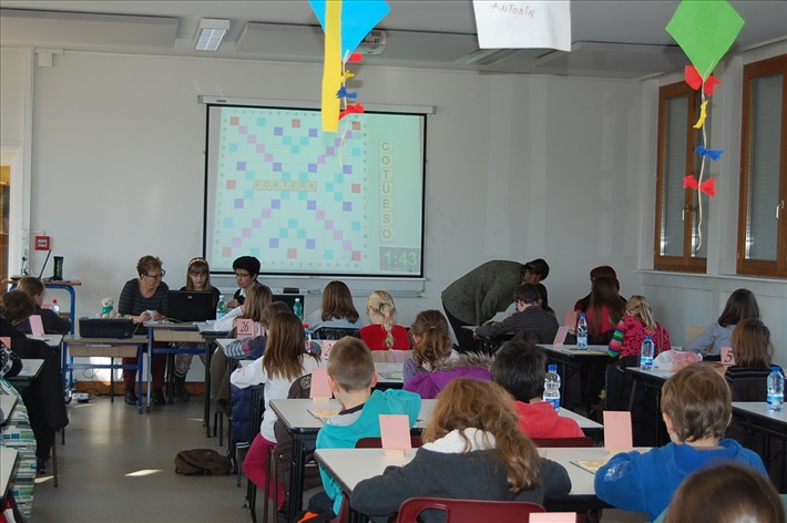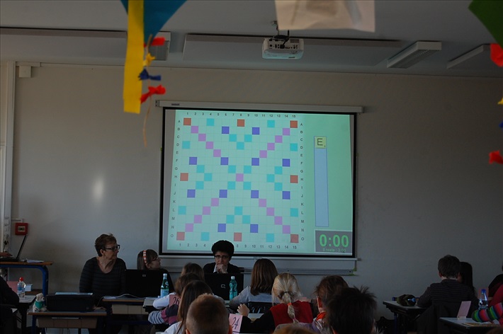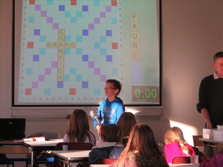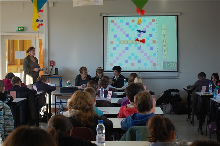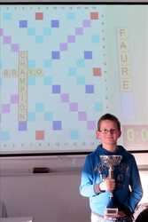 Les élèves de 5A et 5C ont participé au concours de scrabble scolaire en décembre, peu de temps avant les vacances, avec leur professeur de français Mme Salomon. |