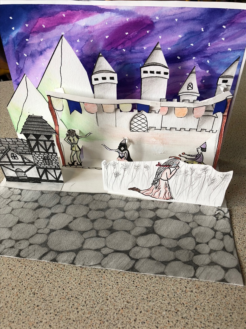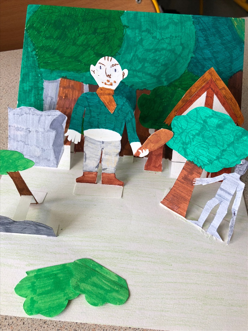 Enfin, ils ont réalisé en Arts Plastiques la couverture de leur roman, sous la forme d'une réalisation "Pop up" en relief.
