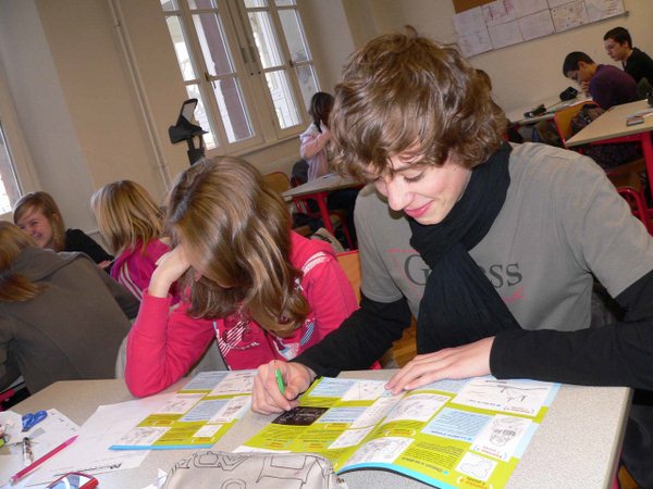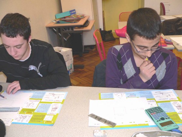Comme chaque année le collège Faesch a participé à l'opération Maths sans frontières. Après avoir gagné deux belles sorties (Europa Park et le Parc de Eaux Vives) l'an passé et l'année précédente, le collège était représenté pour l'édition 2010 par les classes de 3eA, C et D. Vous retrouverez ci-dessous quelques photos ainsi que quelques films réalisés par Mme Burget pour immortaliser la séance de "brainstorming" collectif. Cliquer sur la photo qui vous intéresse puis cliquer avec la souris sur la partie droite de la photo (bouton "Next") pour la photo suivante, ou bien sur la partie gauche de la photo (bouton "Prev") pour revenir à la photo précédente. |