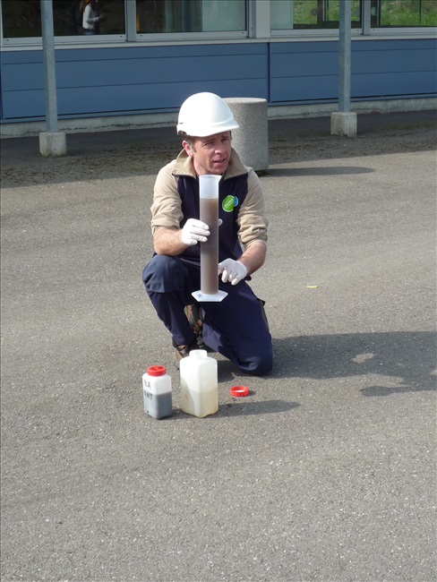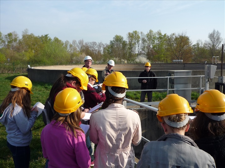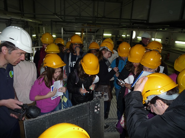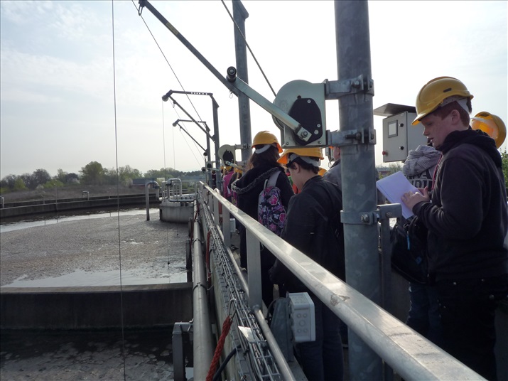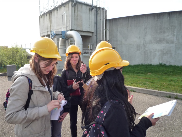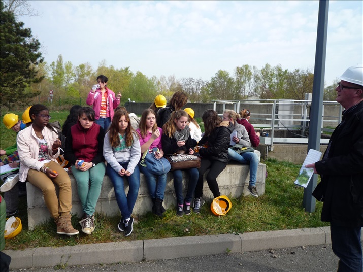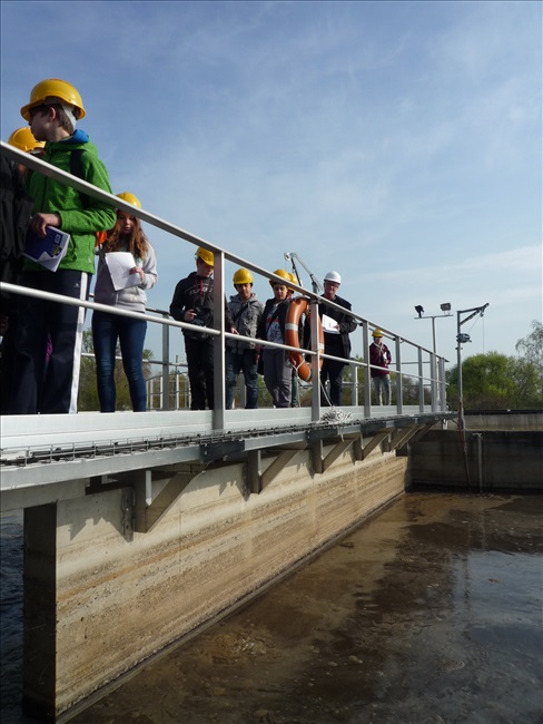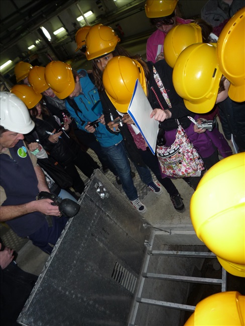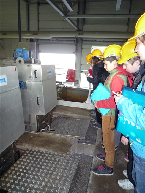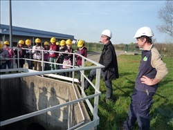 La visite débute par une vidéo au cours de laquelle on peut voir le cheminement de l'eau usée domestique, son arrivée, son traitement, puis son départ de la station d'épuration pour rejoindre la Thur. C'est ensuite par l'intermédiaire d'une promenade que les élèves, guidés par Monsieur Schminck et un technicien, découvrent et observent, un bloc-notes à la main, successivement plusieurs installations où l'eau subit différents traitements. |