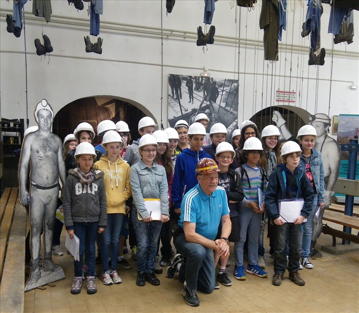 Nous avons été accueillis sur le site de Kalivie par Paul Didierlaurent (dit Pauli), ancien mineur, pour nous raconter son métier de mineur et l’histoire des mines de potasse d’Alsace (MDPA). Un de ses collègues nous a expliqué la situation géologique et la formation de la potasse il y a 50 à 32 millions d’années (voir sur le site académique en suivant ce lien) . Ensuite, nous avons visité la collection géologique, vu un film montrant le travail au fond de la mine et visité la salle des pendus. |
