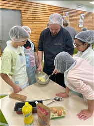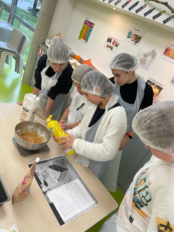 Dans le cadre de la semaine du goût, à l’initiative du chef du restaurant scolaire, une quinzaine d’élèves du collège ont eu la chance de participer à un atelier de cuisine. |