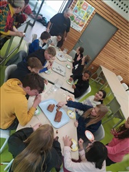 Après la mise au four, les élèves ont reçu un diplôme. Le lendemain, ils ont été récompensés par une petite dégustation. Les gâteaux étaient-ils réussi ? OUI, CHEF ! |