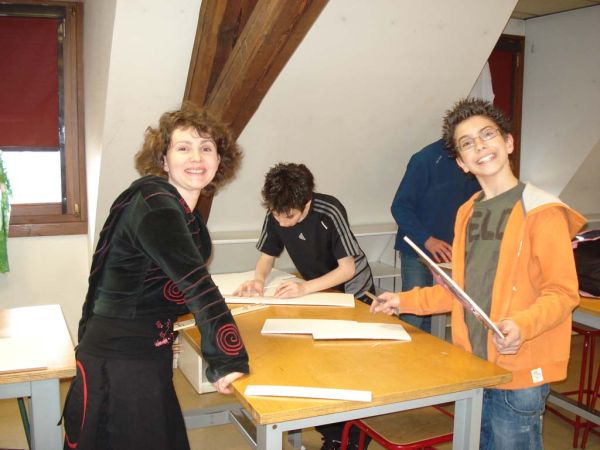 Nous préparons également la mosaïque sur l’autre mur : nous avons acheté des carreaux de faïence blancs et nous projetons de les peindre. Le thème de notre œuvre sera visible ici ainsi que les noms des personnes ayant participé au projet. Mme Bannwarth intervient en particulier dans le travail de pavage du mur avec des carreaux de tailles différentes. Ce sont les garçons du groupe qui se sont intéressés à cet aspect plus mathématique du projet ! En parallèle, une partie de l’équipe se charge de faire le tour des salles du collège et de remettre en état les poubelles de tri papier qui ont été installées par le Club Nature il y a quelques années. Le jour de la kermesse, nous prévoyons également de commencer à créer nos emplacements pour nos futurs petits jardins dans le patio, affaire à suivre…. |