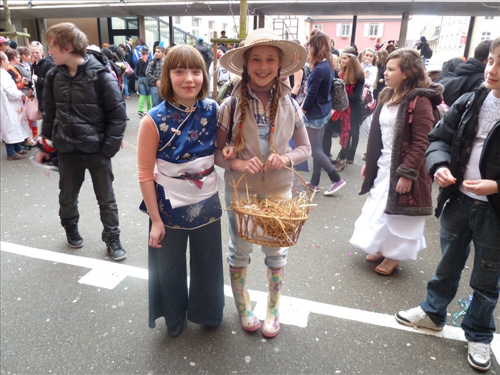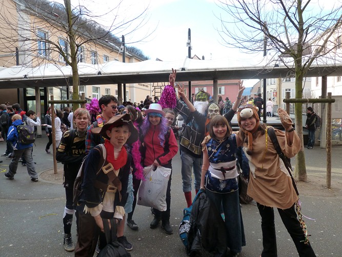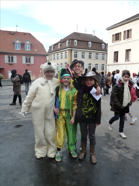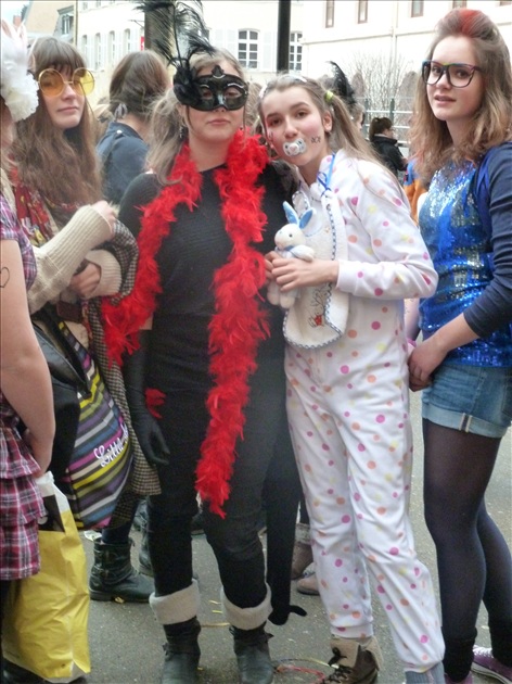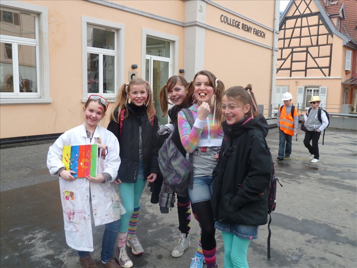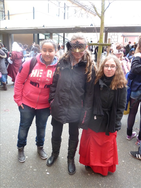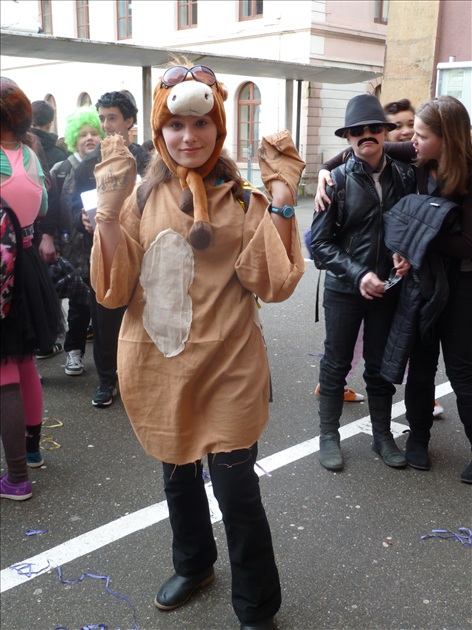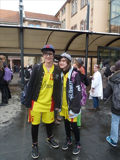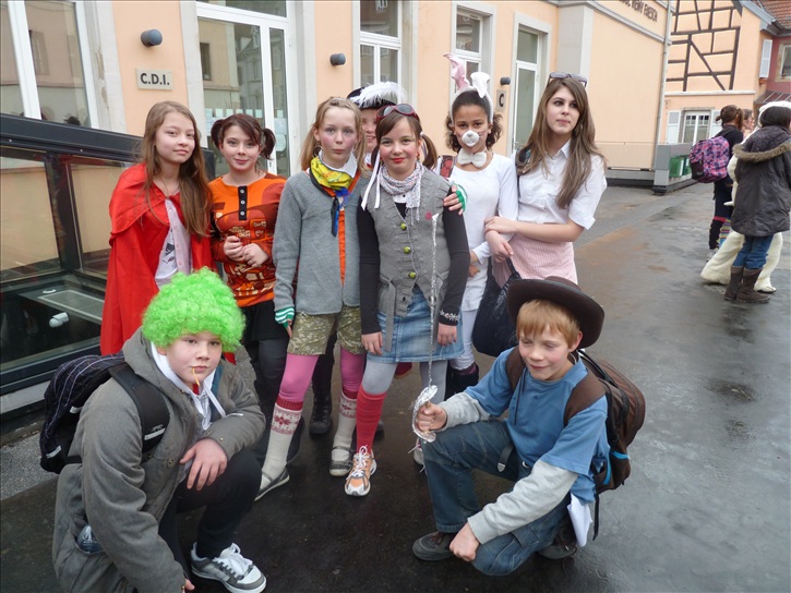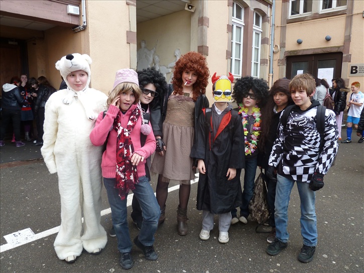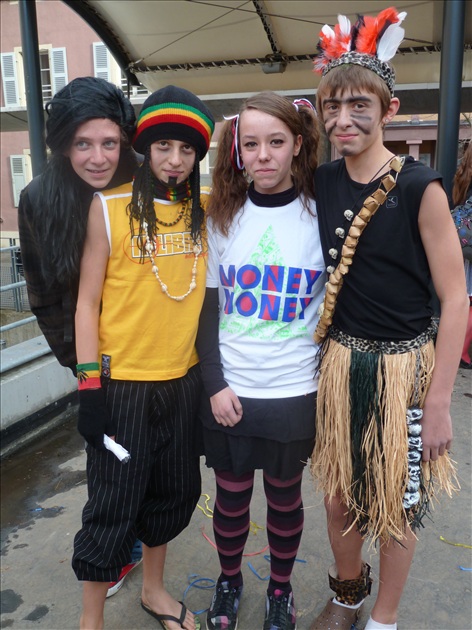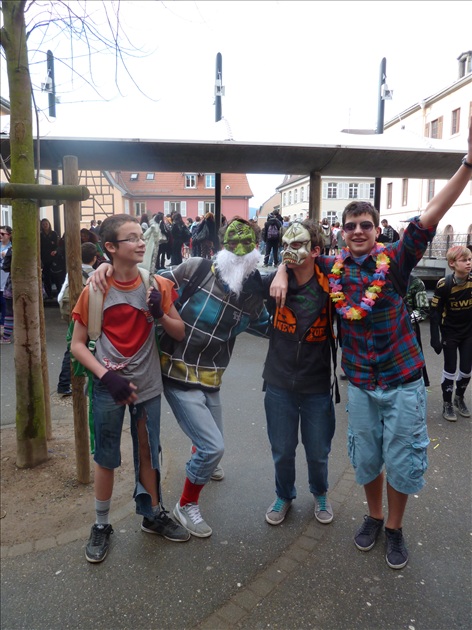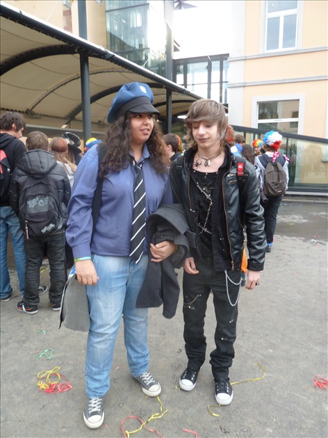 Malgré les apparences, les cours de l'après-midi se sont déroulés dans une ambiance studieuse à l'intérieur des salles de classe... Celles-ci étaient juste un peu plus "colorées" que d'habitude... Bien entendu on saluera, comme il se doit, l'imagination (et le courage) des participants, sans oublier les enseignants, qui ont su faire cours en restant stoïques devant un tel public... |