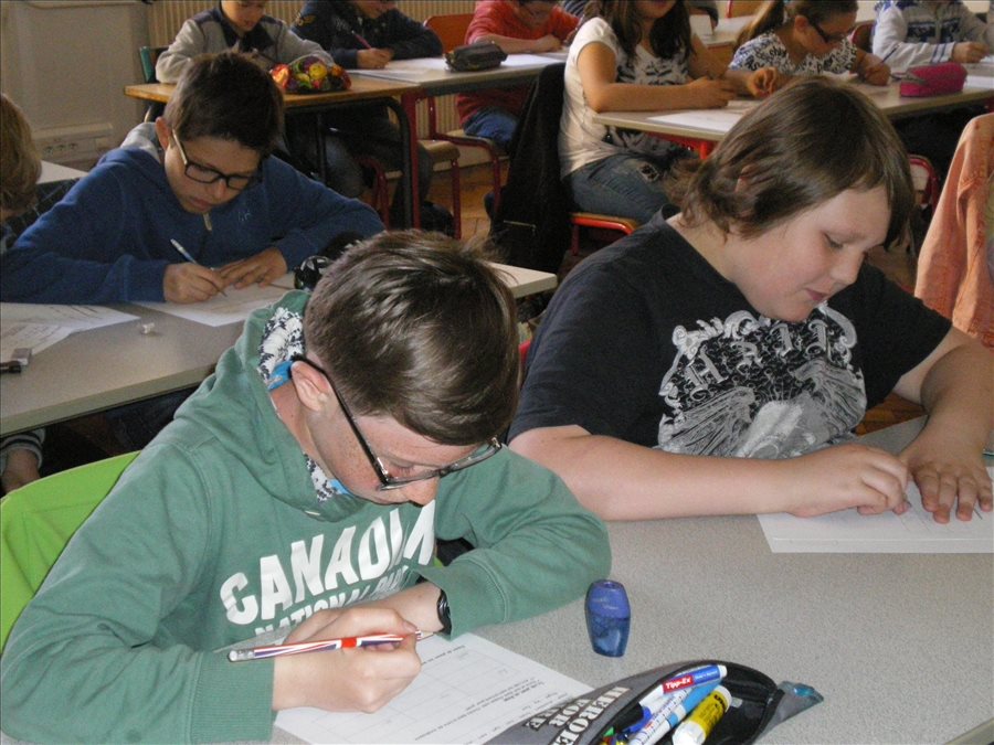 Des ateliers avaient été organisés pour les faire travailler avec des élèves de 6ème : découverte de la danse, de l'escalade, un concours de grammaire, des constructions géométriques, un atelier d'arts plastique pour réaliser un tableau avec ces constructions, un jeu de piste en allemand, des jeux en anglais pour apprendre à nommer les différentes parties du corps. |