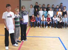 Ils se sont également prêté dans le gymnase à la traditionnelle photo de classe. |