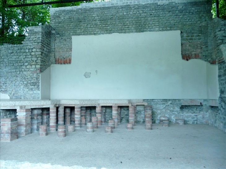 Revenant sur la Venus strasse, Ils ont foulé l’ancien forum et ses sont assis sur les gradins de la curie où siégeait jadis le conseil municipal et sont descendus vers les thermes centraux et ont pénétré dans une fontaine souterraine. Puis ils sont descendus dans un ancien égout qui desservait les thermes centraux. |