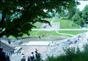 En traversant la Venus strasse,ancienne artère principale de la ville, ils ont remonté les gradins de l’imposant théâtre jusqu’à son déambulatoire où une vue magnifique sur l’ensemble du monument et du temple voisin s’offrit à eux. Franchissant les marches du monumental escalier menant aux vestiges du temple, ils ont pu du haut de son podium, jouir d’une autre vue sur le théâtre. |