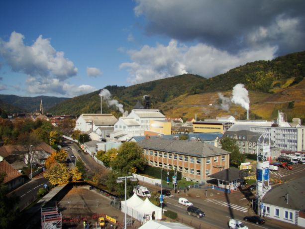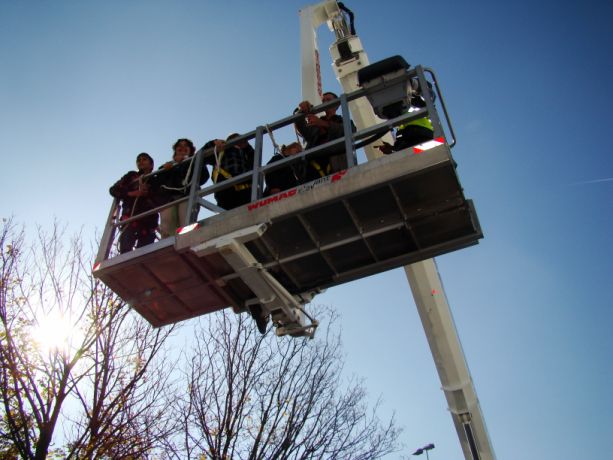 Ils ont pu découvrir les différents stands présentant les métiers de la chimie ou bien passer aux commandes des engins exposés. Les élèves volontaires ont également pu monter en haut d'une nacelle téléscopique pour admirer le site de la chimie, la ville de Thann et même les toits de leur collège... |