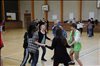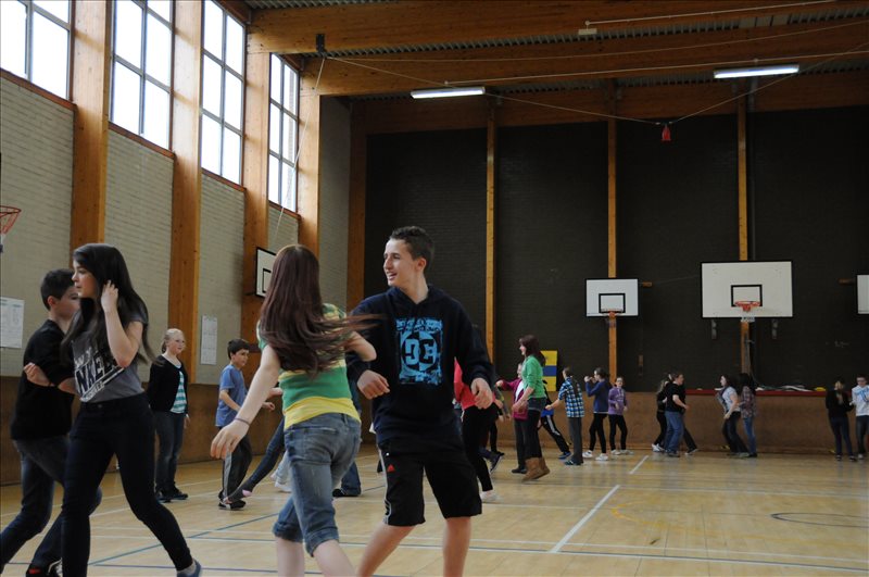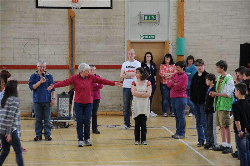 Lundi 6 mai C'est un jour férié en Grande Bretagne: "Bank Holiday". Nous profitons de la matinée pour nous reposer. A 12h30, tout le monde se retrouve à l'école, à Golspie, autour d'un magnifique buffet, préparé par les parents, qui sont aussi de la partie. Nos professeurs nous disent de ne pas rester dans notre coin et de nous mêler aux Écossais. Mais c'est difficile. Ils sont exigeants! Après le repas, Mme MacLean, professeur de français écossaise, et son mari, nous initient aux danses écossaises, dans la salle de sport. Après un peu de confusion au début, nous nous mettons dans le rythme. Et bientôt, nous nous laissons guider par nos correspondants et nos danses prennent de l'allure. |