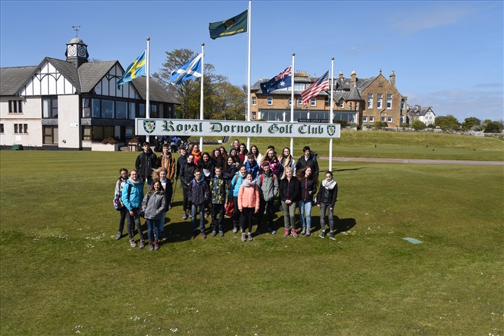 Notre échange avec Golspie High School et Dornoch Academy, dans les Highlands. Le douzième séjour d'une délégation du collège a eu lieu sous un soleil radieux. Nous avons tous profité pleinement de la nature,des grands espaces, des paysages sauvages du Nord de l’écosse. Et nous avons partagé des moments très forts avec nos correspondants. Le voyage a duré quatorze jours, il a débuté le 6 mai, et nous sommes rentrés le 19 mai. Le trajet aller, ainsi que le trajet retour prennent chacun deux jours, mais le temps passe vite quand on est ensemble, et nous avons bien aimé la traversée de quatorze heures en ferry. C'est amusant de dormir sur un bateau! Voici un aperçu de ce que nous avons vécu durant les 10 jours sur place. 8 Mai Distillerie Glenmorangie à Tain. Visite guidée avec une jeune femme qui qui avait fait partie de l'échange il y a une dizaine d'années. Mots du jour: orge - eau - levure - alambics - whisky - odeurs... Dornoch. Une petite ville pittoresque très prisée des touristes et réputée pour son golf royal. Nous avons été initiés au golf par un instructeur professionnel. Mots du jour: golf royal - plage de sable clair - rochers - vagues - pique nique - oiseaux - genêts maritimes - senteurs de noix de coco 9 Mai Ullapool. Nous avons traversé l’écosse d'est en ouest pour nous rendre dans cette petite ville portuaire nichée au creux du loch Broom, c'est un endroit plein de charme. Mots du jour: bateau rapide - gants - bonnets - beau soleil - phoques - marsouins - oiseaux marins - élevage de saumons - pêche à la langoustine - boutiques - pique nique en bord de mer - anniversaire de M. Arnould - senteurs de brise marine