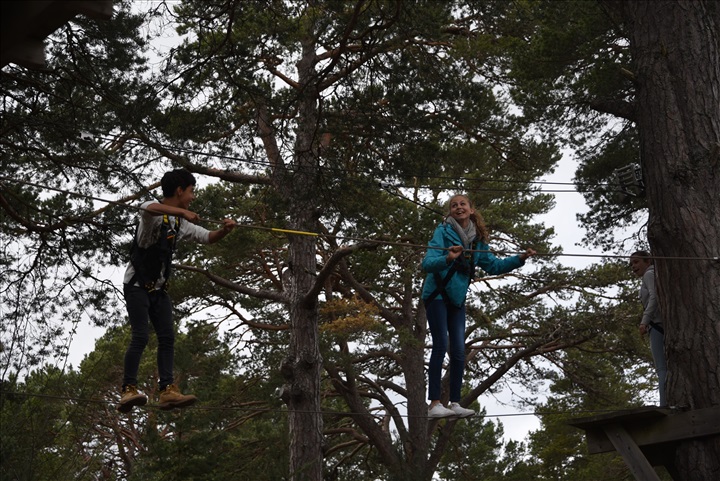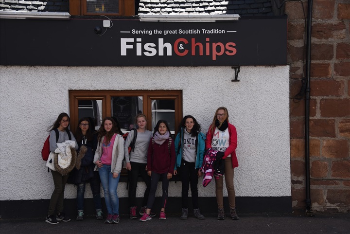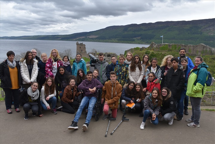 15 Mai Le loch Ness. La visite tant attendue! Nous ne pensions pas que le lac était si grand. Nous avons visité Urqhart Castle, le château tant photographié, le cliché connu dans le monde entier. Mots du jour: ruines - tours - lac bleuté - herbe verte - moutons - catapulte - souvenirs d'affrontements entre clans. Loch Ness exhibition centre: monstre ou pas monstre? That's the question! Plongée dans le loch pour comprendre son écosystème, la géologie de cette faille où repose le lac, et aussi découvrir les différentes expéditions mises en œuvre pour trouver le monstre. Mots du jour: monstre - eaux tourbeuses - esturgeons - sonars - bathyscaphes - canulars - attraction touristique. Inverness: deux heures de shopping dans la capitale des Highlands. L'occasion d'acheter des souvenirs pour la famille et aussi de tester son vocabulaire. Mots du jour: centre commercial - souvenirs écossais - emplettes 16 Mai Landmark: parc forestier avec des attractions. Les correspondants Ecossais nous ont accompagnés. Nous avons discuté, échangé, profité des animations ensemble. Cette journée tous ensemble a beaucoup plu à tout le monde. maintenant que nous nous connaissions mieux et que nous avions l'habitude de parler en anglais, la communication était plus aisée. Côté nature: écureuils - oiseaux - nichoirs - arbres - dôme tropical - papillons - cailles Côté amusement: grand huit - toboggans avec chutes d'eau - saut à l'élastique - parcours d'arbre en arbre - labyrinthe - escalade - illusions d'optique 17 Mai Dernier jour déjà! Et anniversaire d'Elisa Dunrobin castle: Le château de Golspie. Nous nous y sommes rendus à pied, en longeant la mer et en effectuant un petit détour par les bois pour admirer les jacinthes sauvages qui tapissent de bleu les sous bois à cette période du printemps. C’était très beau! Mots du jour:mer bleu foncé - prés verts - algues vertes et brunes - rochers - oiseaux - sous bois - vert tendre des jeunes feuilles - jacinthes bleues Nous avons visité le château. Il appartient à la famille des ducs de Sutherland et sa partie la plus ancienne date de 1300. Le mobilier date de l'époque victorienne. Mots du jour: château - période victorienne - trophées de chasse - argenterie - livres anciens - portraits de famille - plafonds hauts - vue sur la mer - jardins à la française A l'heure du déjeuner, petite expérience bien britannique. Nous avons acheté nos repas au "chippy" et avons mangé sur la plage de Golspie. Mots du jour: fish and chips - scampi and chips - chicken and chips - beefburger and chips. L’après midi, deux courageux ont fait la "Burn walk" avec M. Arnould pour aller voir une cascade d'eau tourbeuse dans un petit vallon encaissé dont les parois rocheuses sont tapissées d'ail des ours. Quelques uns sont allés à la piscine et les autres ont simplement joué et paressé sur la plage, et profité du temps chaud et du soleil radieux.