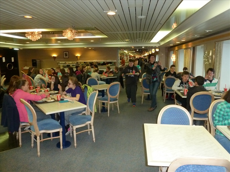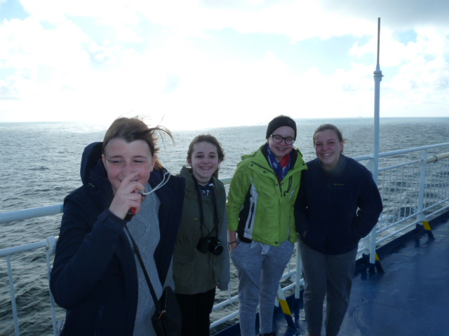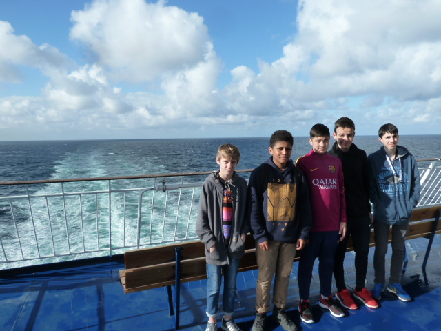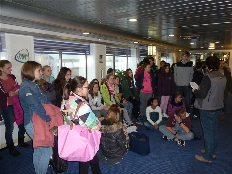 Grasse matinée pour la plupart. Petit déjeuner et petite promenade sur le pont. il y avait beaucoup de vent. A 14 heures, nous avons débarqué à Rosslare. Nous avons traversé l'Irlande d'est en ouest pour nous rendre à Galway où nous attendaient les familles d'accueil. |