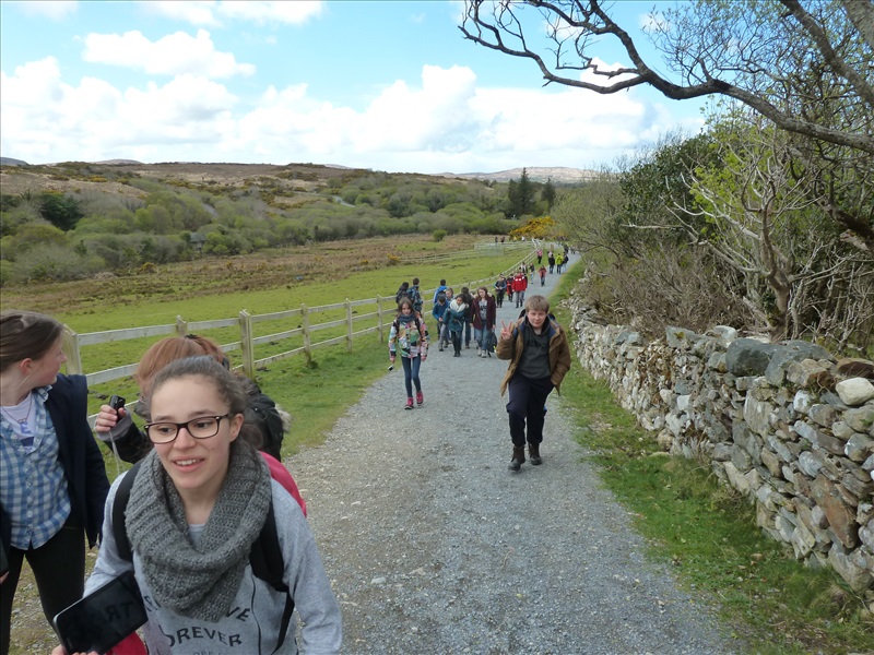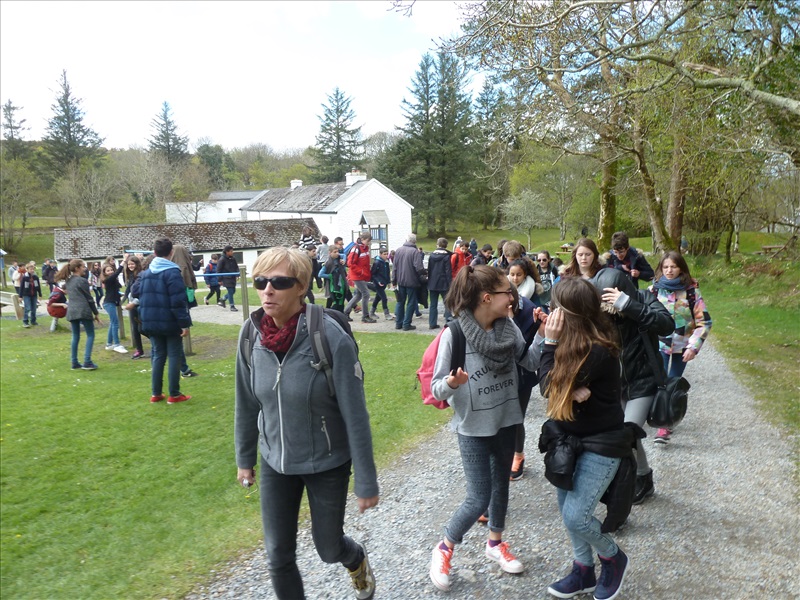 Nous sommes partis à la découverte du Connemara. Nous avons sillonné des routes pittoresques en écoutant et en reprenant en cœur "Les lacs du Connemara" de Michel Sardou. Nous avons fait un arrêt à Clifden, une ville touristique. En fin de matinée, nous nous sommes rendus au "Connemara National Park visitor centre" pour découvrir une exposition sur la tourbe et la nature. Ensuite, nous avons fait une balade dans la lande, bien arrosée au début, pour découvrir une vue magnifique sur la côte sauvage. L’après midi,au "sheep and wool centre", on nous a expliqué le travail de la laine, depuis la tonte des moutons jusqu'aux jolis pulls à motifs irlandais. |