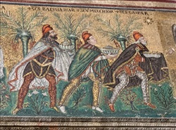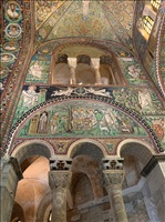 Lundi 1er avril : Ravenne Après une bonne nuit de sommeil, en route pour Ravenne et ses fameuses mosaïques ! Fondée dans une zone lagunaire, tout comme Venise, la cité connaît une certaine prospérité grâce à l'installation sous Auguste d'un important port de guerre. Alors que ce port commençait à s'ensabler et que la flotte se dispersait, Ravenne devint pendant trois siècles une capitale politique, religieuse et artistique, accueillant successivement les empereurs romains, les rois Goths avant de tomber sous la domination byzantine. Ravenne possède un ensemble de mosaïques et de monuments paléochrétiens unique au monde. Si cette ville peut sembler assez banale en apparence, il suffit de rentrer dans le mausolée de Galla Placidia, dans la basilique Sant’Apollinare nuovo ou l’incroyable basilique San Vital pour rester ébahi devant tant de merveilles ! Nos guides ont su nous transmettre leur enthousiasme et leur passion pour l’histoire complexe de cette ville qui fut un temps capitale de l’empire romain. |