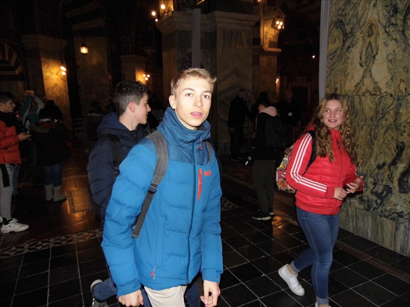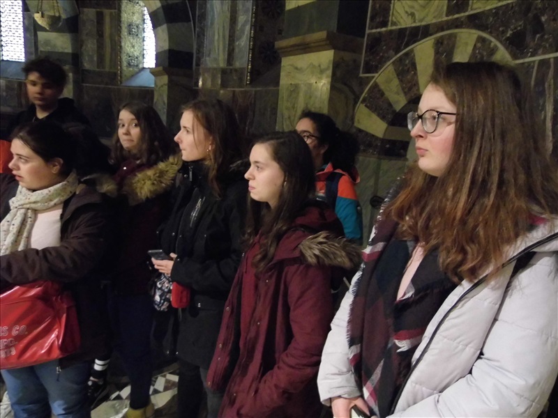 Mercredi 6 mars 7h15: Rendez-vous dans le froid matinal, pour un dernier adieu à la collégiale de Thann. 7H30 : Enfin l’heure tant attendue du départ. C’est parti pour une longue journée de voyage en bus. Passage par les Vosges pour faire un petit coucou aux Luxembourgeois et aux Belges avant d’arriver en Allemagne, dans une ville impériale, capitale de l’empire carolingien… Vous avez deviné ?