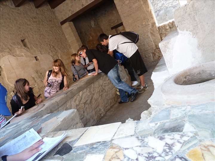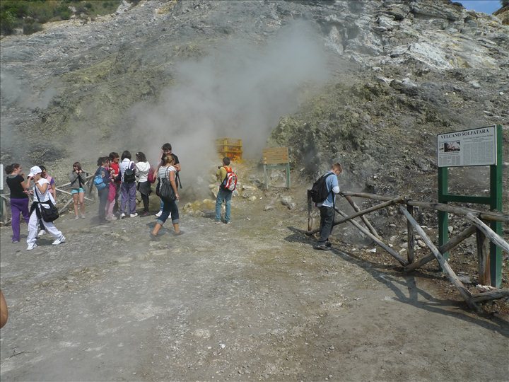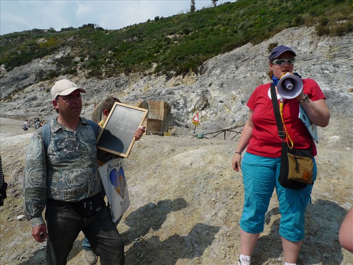Mercredi, visite guidée de Pompéi et de la fameuse Villa des Mystères, avant de marcher sur un cratère, la solfatara. Melle Mack au « speaker » leur a expliqué les phénomènes géologiques de cette région des champs phlégréens chantée par Virgile. |