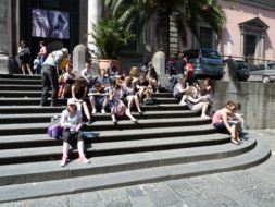 Mardi, à Paestum, ils ont foulé l’antique Poséidonia grecque avec ses temples et son musée le matin, sous le charme d’Angelo, leur guide, puis visité une fromagerie artisanale de mozzarella di bufala et l’élevage de buflones qui leur fournit le lait. Après une détente à la plage, ils ont écouté le cours de M. Ferrari et Melle Mack s’y afférant. |