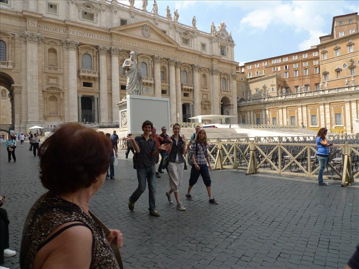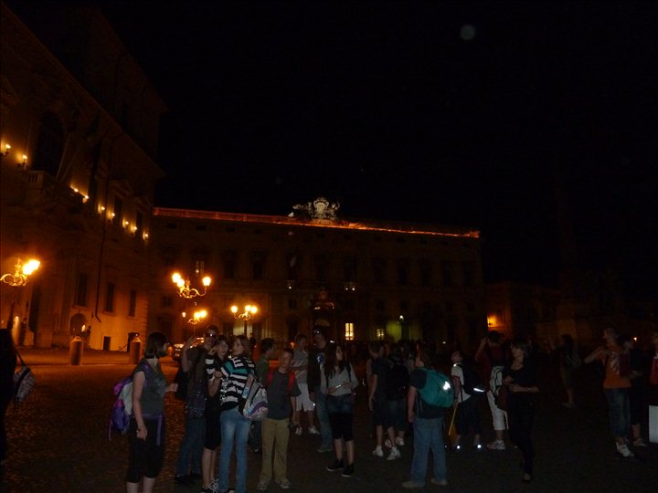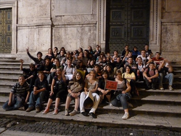 | Ils sont allés ensuite de place baroque en place baroque, pour en apprécier leur scénographie : la place d’Espagne et son escalier à 3 rampes couvert d’azalées roses, la Fontaine de Trevi et sa fraîcheur, le coucher de soleil sur la place du Quirinal après un dîner dans une charmante pizzéria « "La Fontaine de Vénus" où les jeunes ont été conquis par Omar le serveur. Pour finir, ils ont attendu leur car sur la place del popolo, illuminée, avant un retour nocturne. Au retour chacun est reparti avec son pochon de mozzarella de la CREMERIA DI LASCIO DAVIDE. |